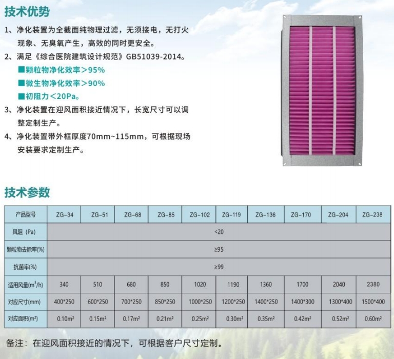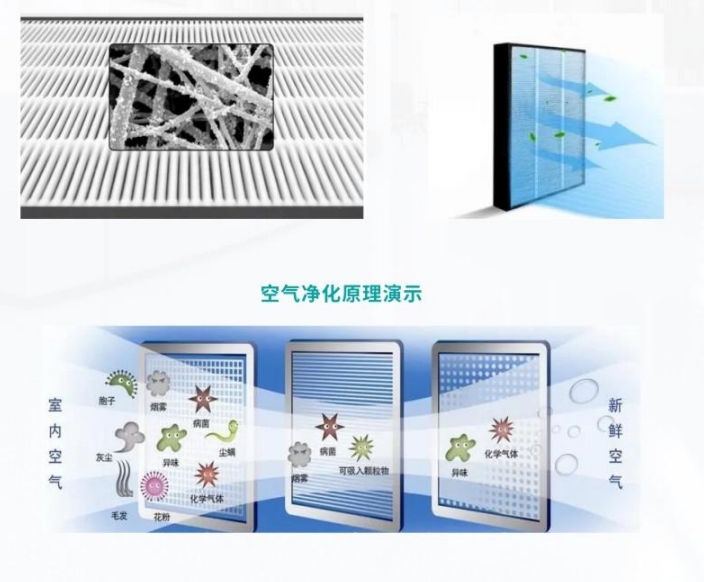 升級第三代過濾材料,由多種成分復合而成,具有凈化PM2.5、殺菌、去除甲醛、苯系物、VOC等有害氣體等功能。使用靜電紡絲生產納米直徑聚合物,合成基材纖維。再在基材纖維中添加活性炭、溶菌酶、光催化、活性硅...等組成。滿足《綜合醫院建筑設計規范》GB51039-2014.
